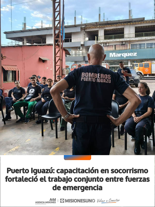 Bomberos Voluntarios de Puerto Iguazú llevaron adelante una capacitación interinstitucional en socorrismo que reunió a distintos actores vinculados a la respuesta ante emergencias, con el fin de fortalecer el trabajo coordinado en la ciudad.