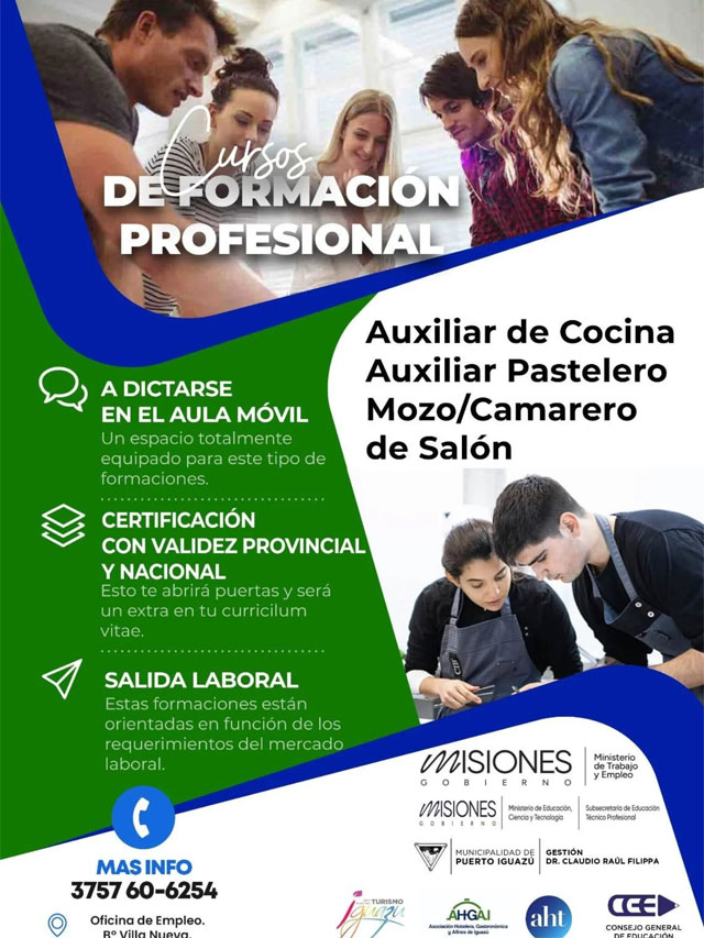 Las personas interesadas pueden solicitar información e inscribirse en la Oficina de Empleo, ubicada en el barrio Villa Nueva, en la intersección de las calles 25 de Mayo y 17 de Octubre. También se encuentra habilitado el número telefónico 3757 60-6254 para consultas. Con esta iniciativa, se busca seguir generando instancias de formación que acompañen el crecimiento laboral de los misioneros.