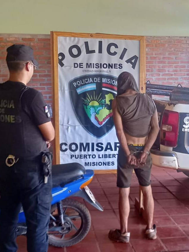 Un joven de 22 años, identificado como Federico R. y conocido como “Fede”, fue detenido en la localidad de Puerto Libertad, acusado de haber sustraído una motocicleta en el barrio Santo Domingo.