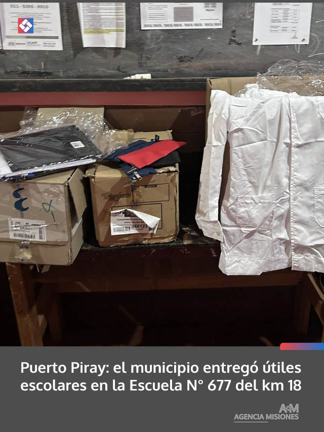 AGENCIA MISIONES.UNO | La Municipalidad de Puerto Piray continúa acompañando a las instituciones educativas con la entrega de artículos escolares, en el marco de acciones que buscan fortalecer el desarrollo de la comunidad educativa.