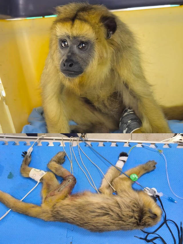El pasado martes, una hembra de mono carayá (Alouatta caraya) ingresó al Parque Ecológico El Puma, dependiente del Ministerio de Ecología y Recursos Naturales Renovables de Misiones, luego de ser atropellada en cercanías del Parque Federal Campo San Juan. El ejemplar presentaba una fractura expuesta de fémur, una lesión de alta complejidad que generó un cuadro crítico.