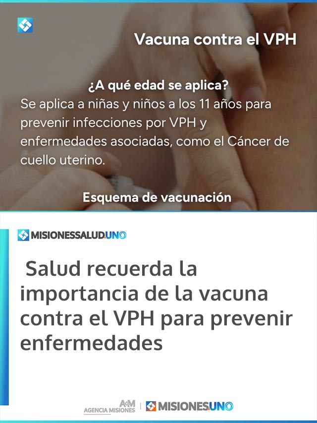 AGENCIA MISIONES.UNO | Autoridades sanitarias destacaron la importancia de la vacunación contra el Virus del Papiloma Humano (VPH), una herramienta fundamental para prevenir infecciones y enfermedades asociadas, entre ellas el cáncer de cuello uterino.