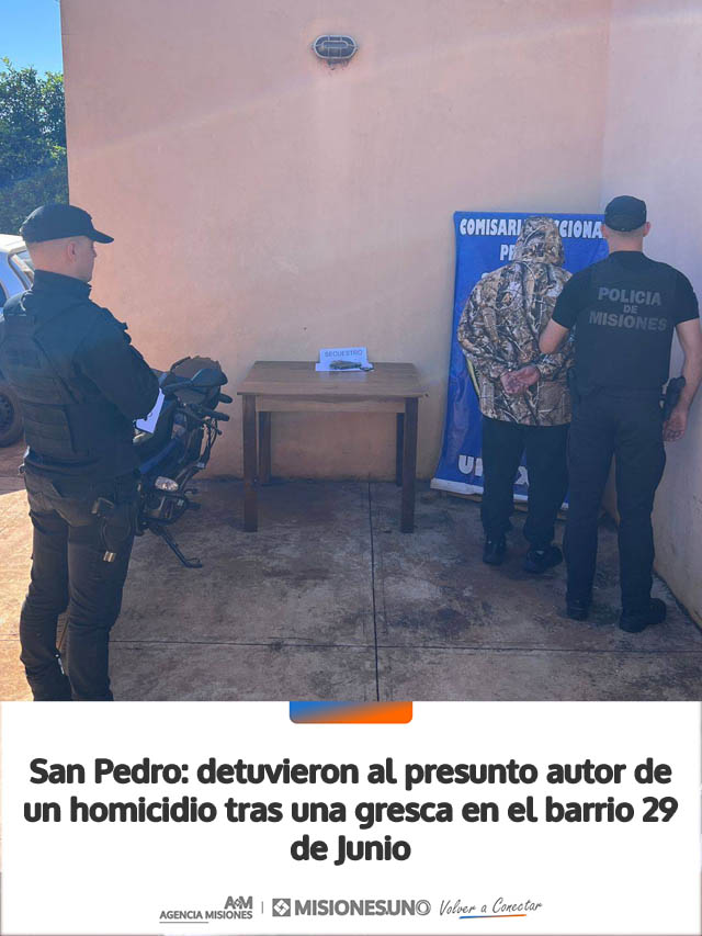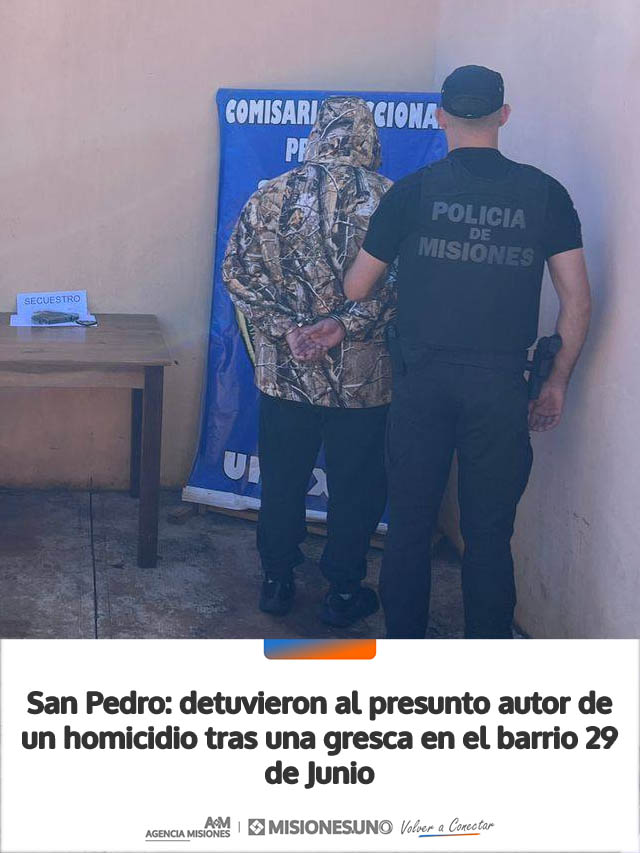 AGENCIA MISIONES.UNO | Un hombre fue detenido en San Pedro acusado de haber cometido un homicidio con arma de fuego, tras una violenta gresca ocurrida en el barrio 29 de Junio que terminó con una persona fallecida.