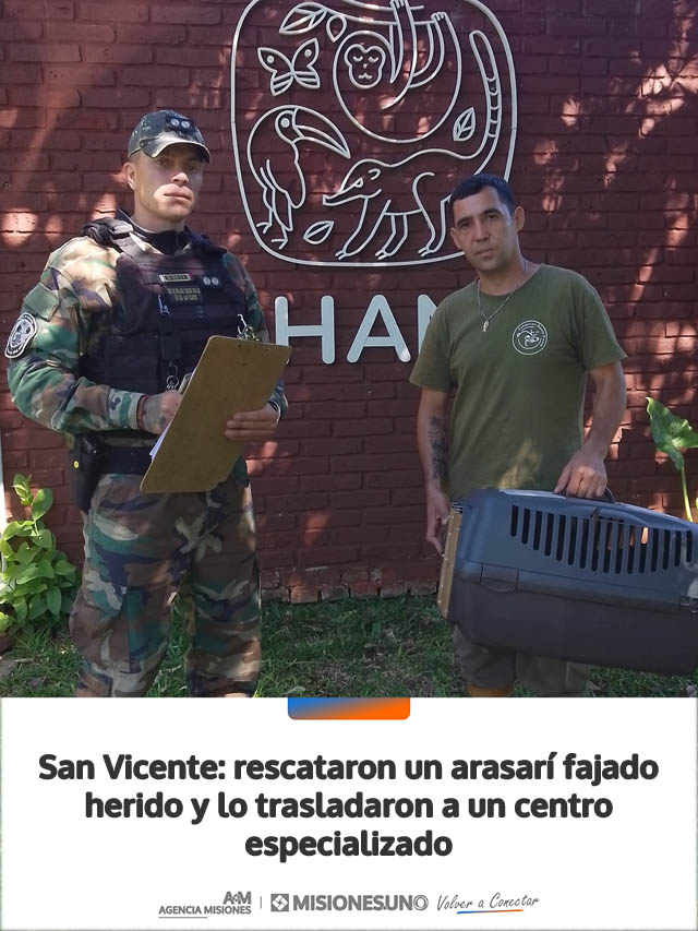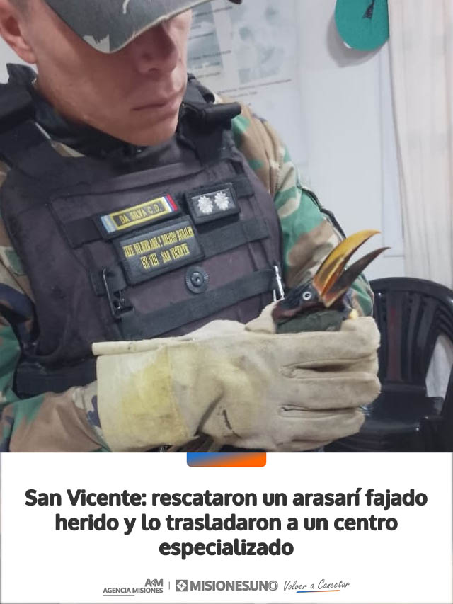 San Vicente: rescataron un arasarí fajado herido y lo trasladaron a un centro especializado