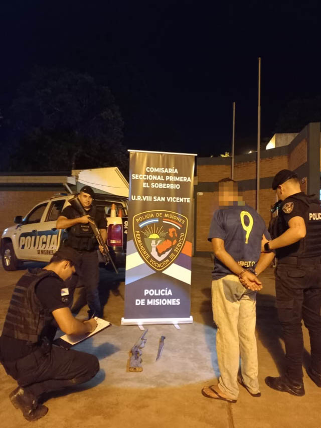AGENCIA MISIONES.UNO | La Policía de Misiones intervino este martes en dos hechos de violencia registrados en El Soberbio y San Vicente, donde fueron aprehendidos los acusados y se secuestraron las armas utilizadas en cada caso.