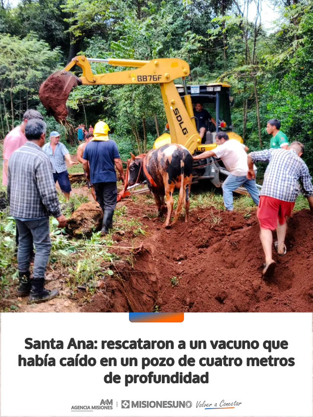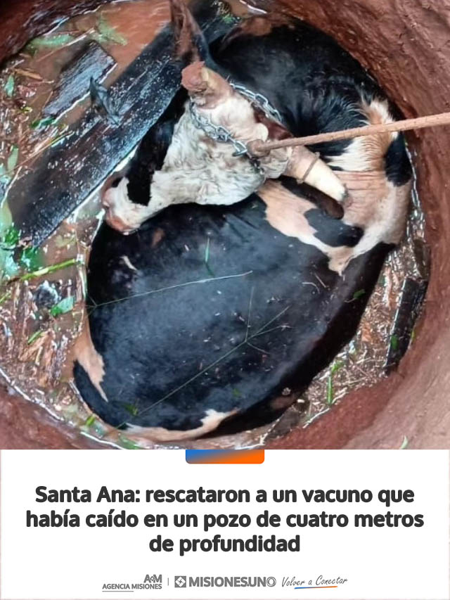 Efectivos de la División Bomberos de Santa Ana rescataron el sábado por la mañana a un animal vacuno que había caído en un pozo en un barrio de esa localidad, en un operativo que requirió la intervención coordinada de distintos actores.