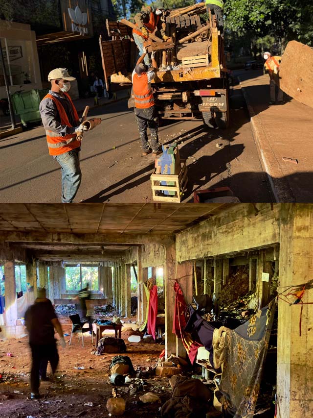Durante el operativo se procedió al retiro de las personas que se encontraban en el predio y a la posterior limpieza del espacio, con el propósito de restituir condiciones adecuadas y evitar situaciones que pudieran afectar la seguridad y la convivencia comunitaria. La intervención contó con el acompañamiento de efectivos de la Policía de la Provincia, quienes brindaron respaldo durante el procedimiento.