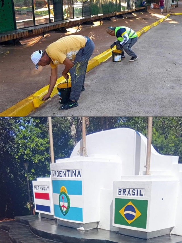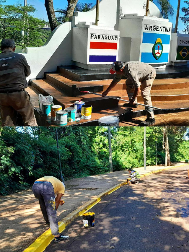 Las acciones forman parte de un plan de mantenimiento urbano que busca garantizar mejores condiciones para vecinos y visitantes. En esta oportunidad, se llevaron a cabo trabajos de pintura en el mástil del Hito Tres Fronteras, uno de los símbolos más representativos de la ciudad. Además, se realizaron tareas de señalización y pintura en cordones cuneta de la costanera y en avenidas principales, reforzando la seguridad vial y el ordenamiento del tránsito.