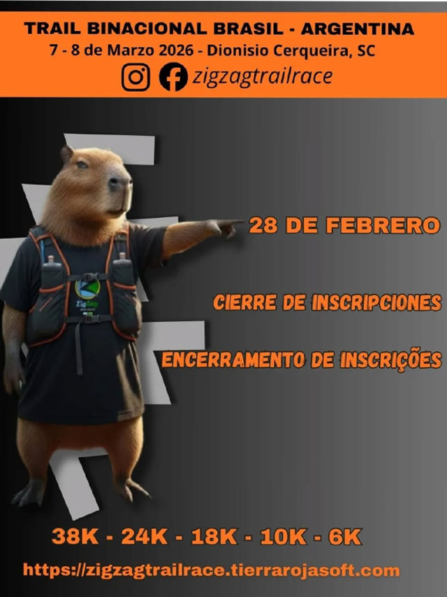 AGENCIA MISIONES.UNO | La competencia Zigzag Trail Race celebrará una nueva edición el 7 y 8 de marzo de 2026, con distancias de 38K, 24K, 18K y 10K, en un circuito que conectará territorios de Brasil y Argentina a través de entornos naturales.
